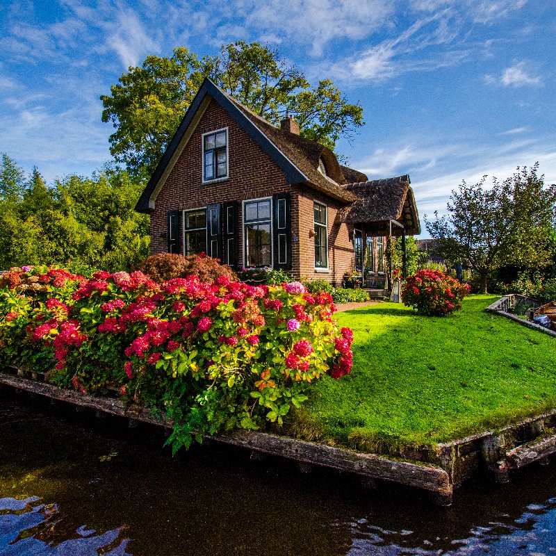 Het is niet elke dag dat je huizen met rieten daken ziet. In Giethoorn zijn deze huizen nog magischer omdat ze op stukken groen zitten die boven water zweven dat door bruggen is verbonden – het is inderdaad als een dorp uit een verhalenboek.